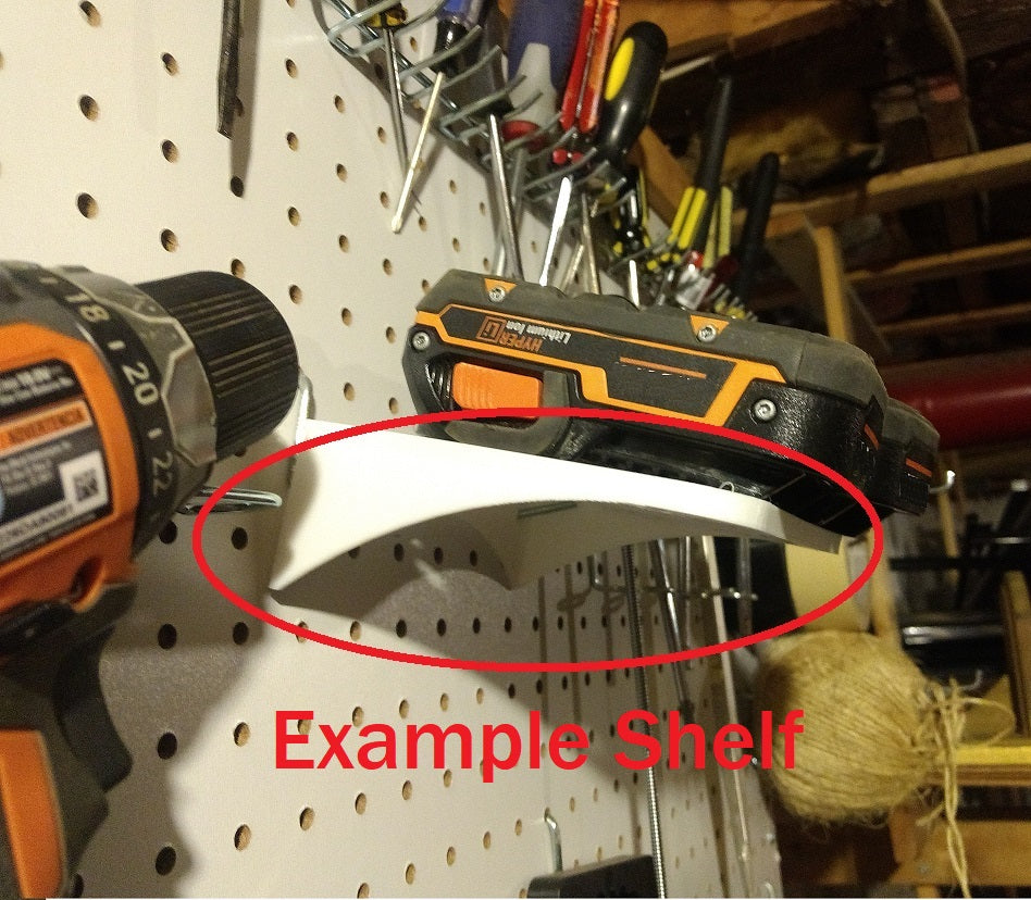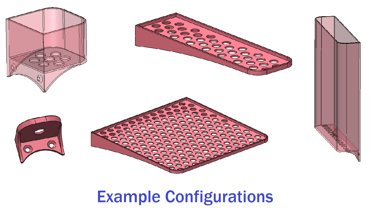 This configurable product is a small shelf with a perforated surface. There is a lip around the edge to help contain items. The length, width, and height of lip are all configurable. This object can be fabricated in a variety of methods including 3D printing.